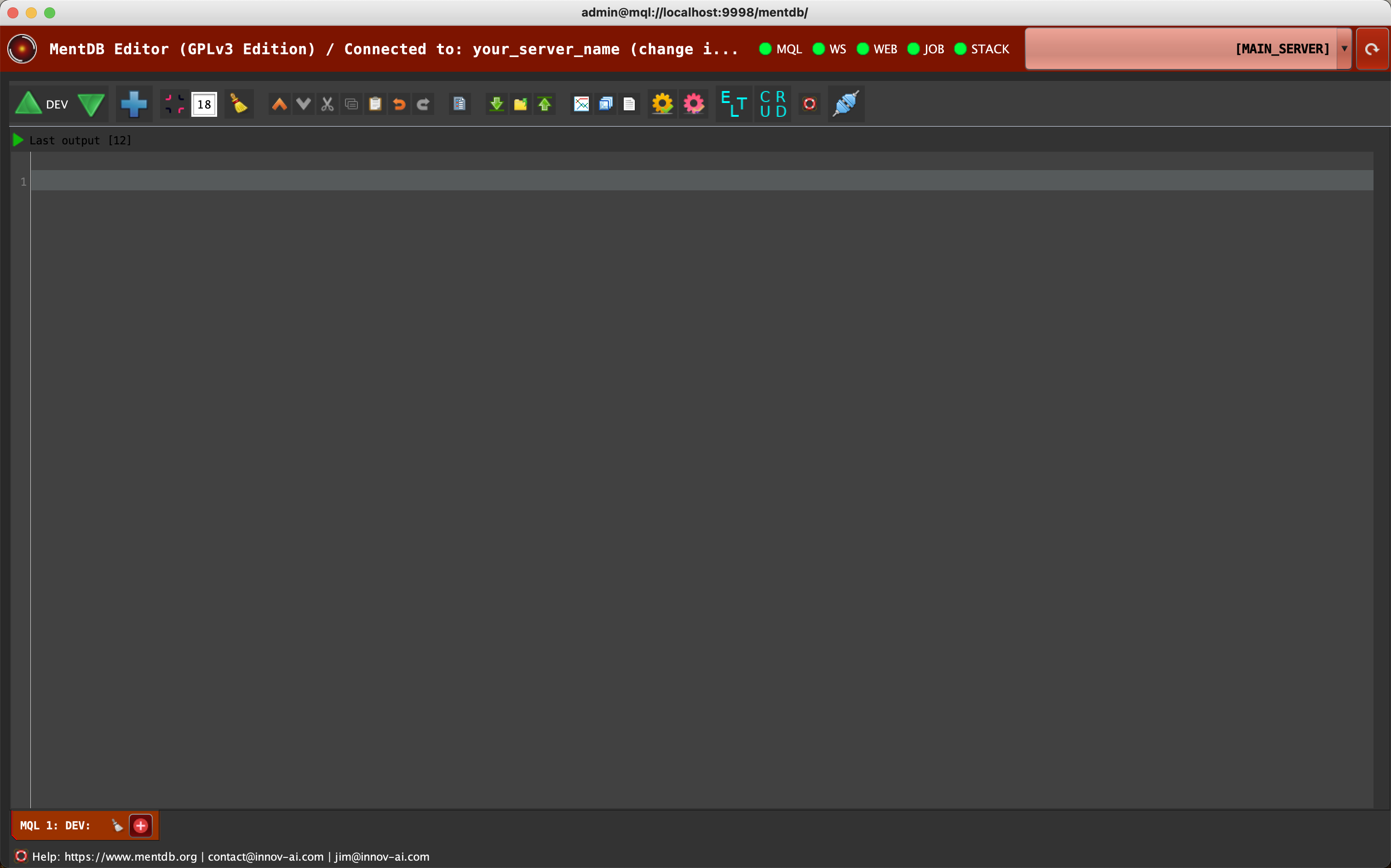 > Start the server > (or start the server for the first time (embedded mode - H2 Database)) > (or start the server for the first time (remote mode - MySQL 8 Database)) > Open the MentDB Weak Editor