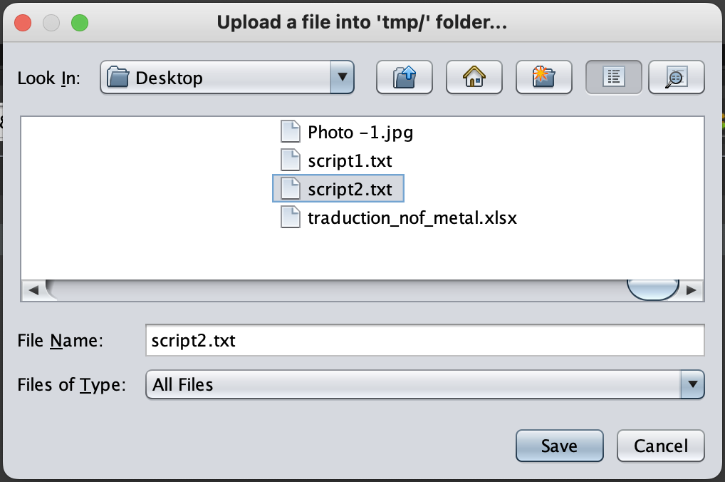 To upload a file to MentDB Weak server (into the 'tmp' folder), click on this button :