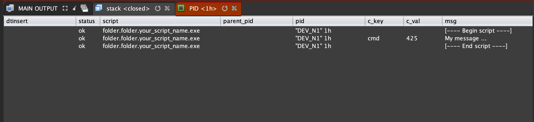 To show the stack log directly click on