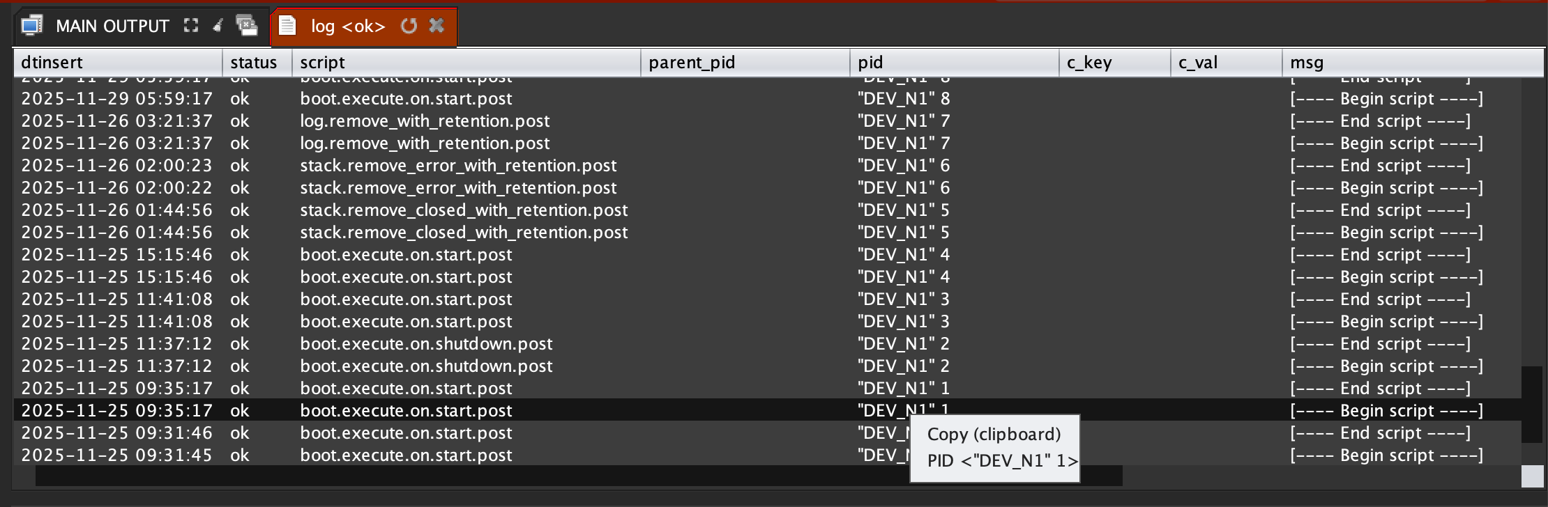 You can see all logs from the selected business process ...
