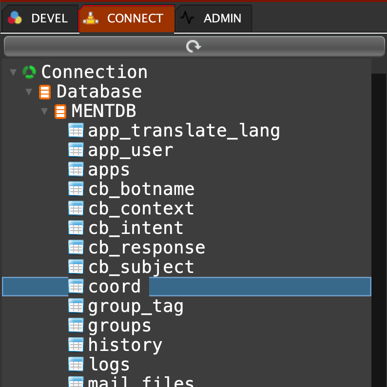 "1"In the CONNECT menu double click on MENTDB database...