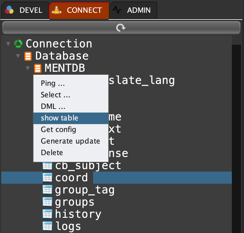 Or if your database is already opened, right click on MENTDB database and select 'Show table' to refresh, or click on the refresh button...