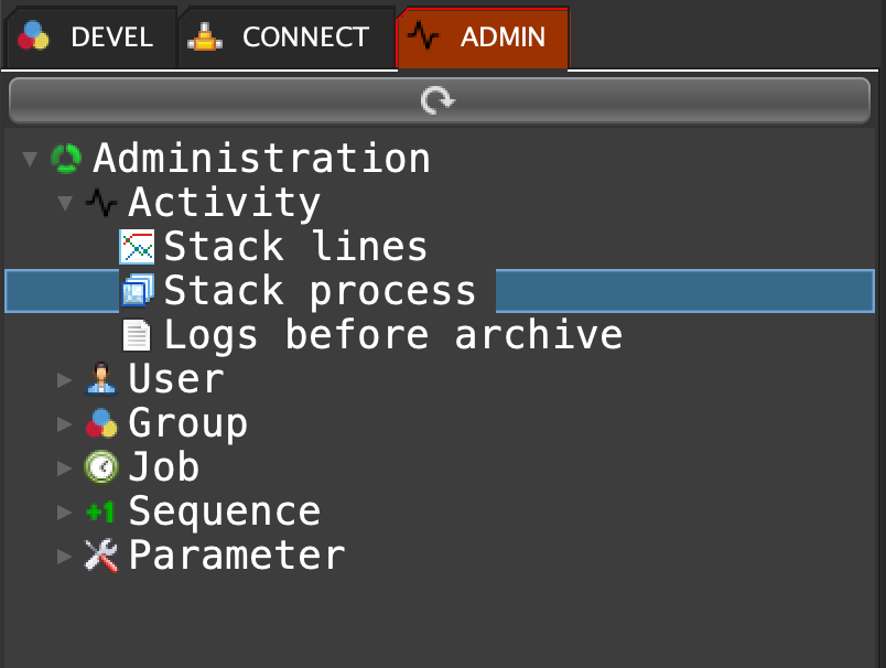 Click on the ADMIN tab, open 'Activity', double click on 'Stack process' ...