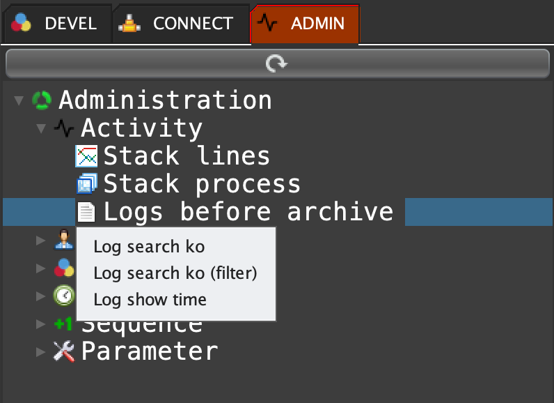Click on the ADMIN tab, open 'Activity', double click on 'Logs before archive' ...