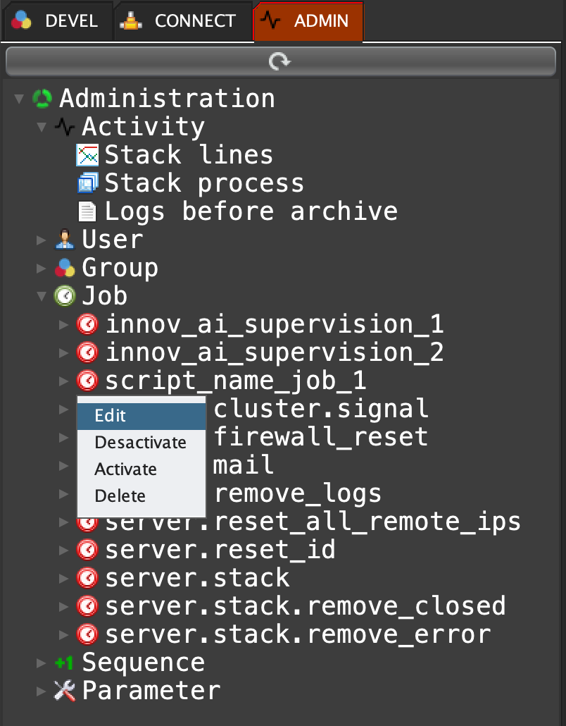 Click on 'ADMIN' tab, open 'Job', right click on the job key 'script_name_job_1' and select 'Edit'